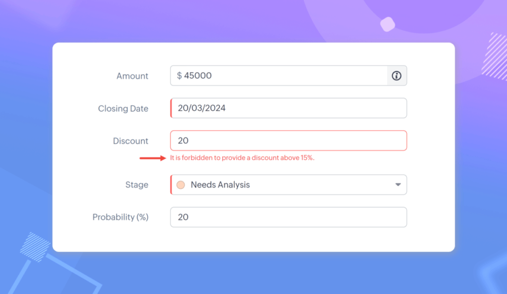 Zoho crm validation rules